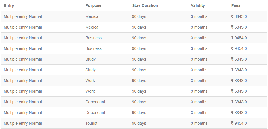 Service Charges will be applicable for all visa services.