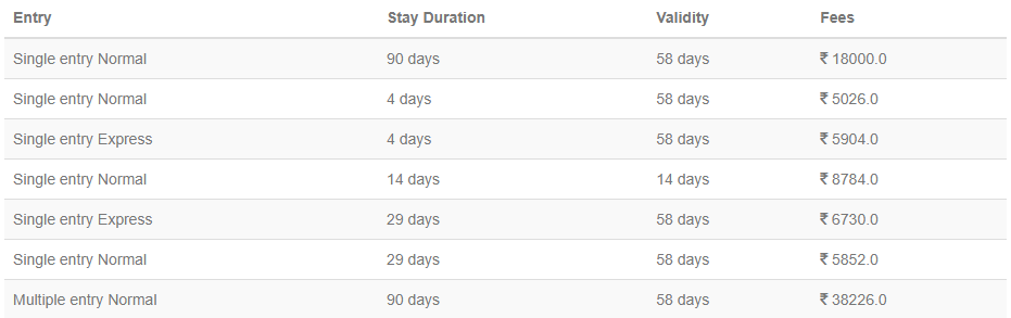 Visa Fees for United Arab Emirates Visa: